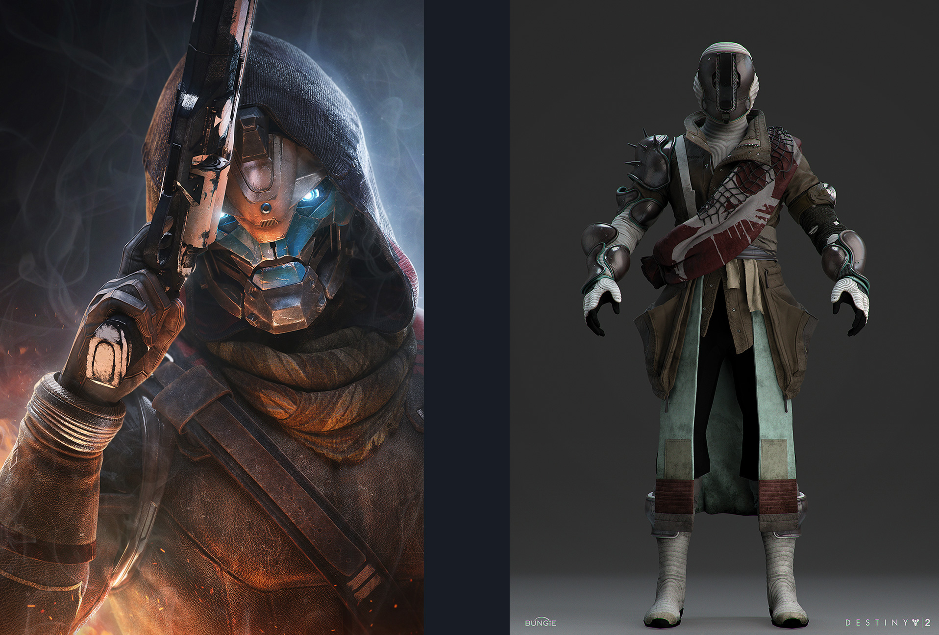 At Bungie, we strive to build beautiful worlds, and Forsaken is no exception. From the Tangled Shore to the Dreaming City, the weapons, armor, and characters are all meticulously crafted by our talented artists. We have a few of their favorites to share here, and each link below will take you to their portfolios, which offer more of their inspiring creations.