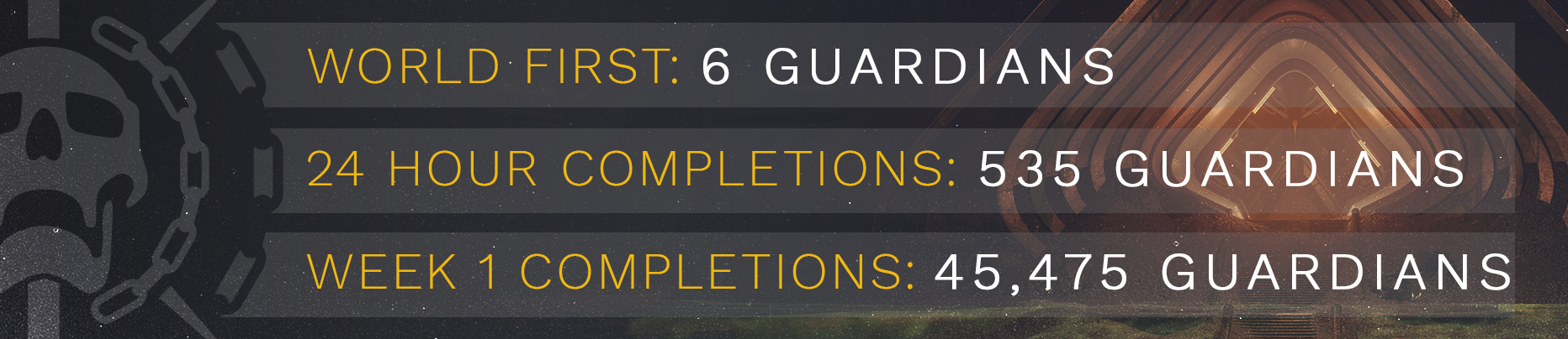 Thousands of Guardians explored deep within the Leviathan to tackle the challenges of the Crown of Sorrow raid. A fireteam of six completed it first and paved the way for others to follow in their footsteps. We made a graphic showing the number of Guardians who beat the raid in a few key timeframes during the first week.