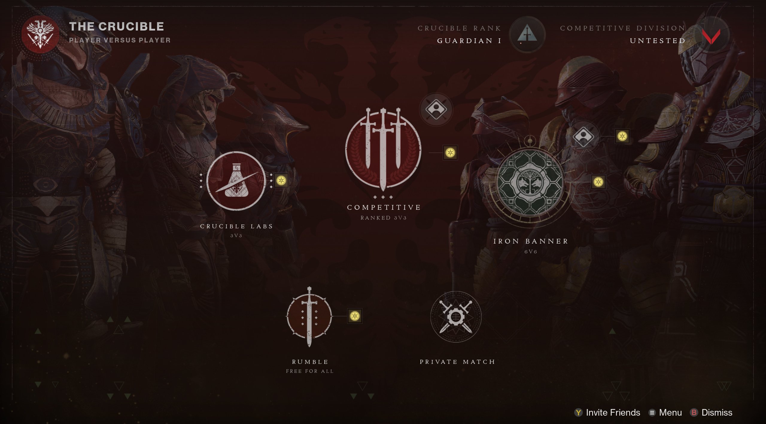 Starting in Season 19, the Crucible screen will have the following options: