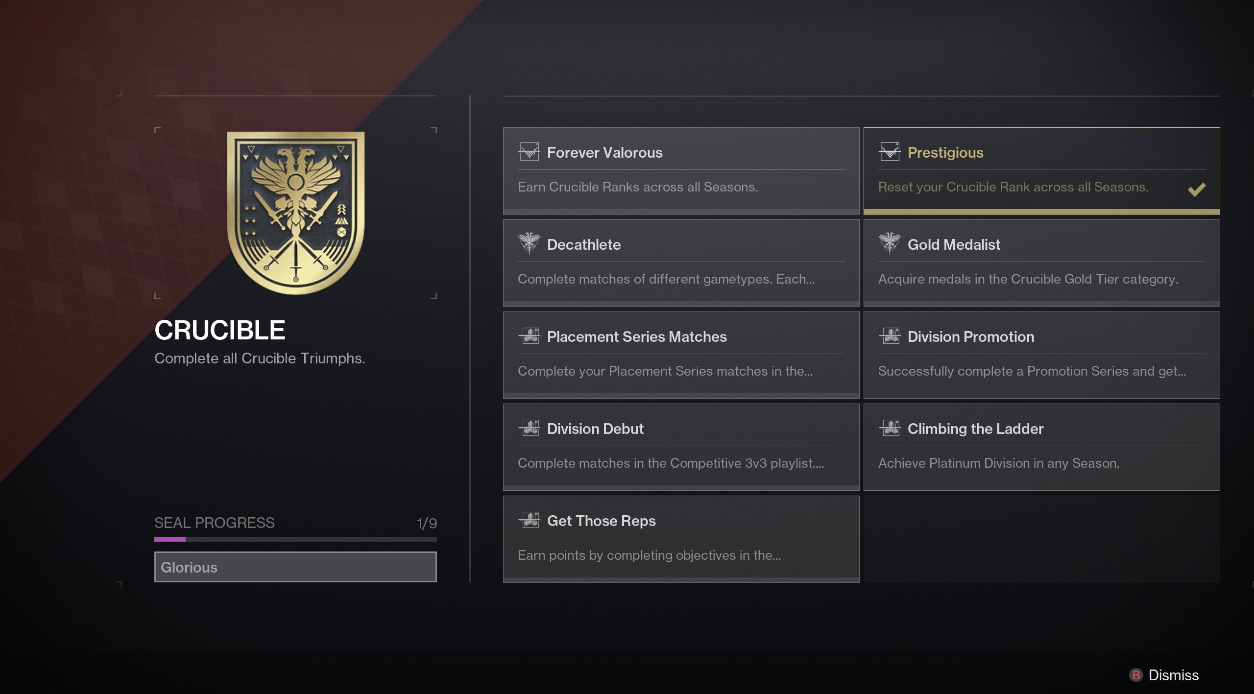 - Change the Seal requirement to complete 8 out of 9 Triumphs.