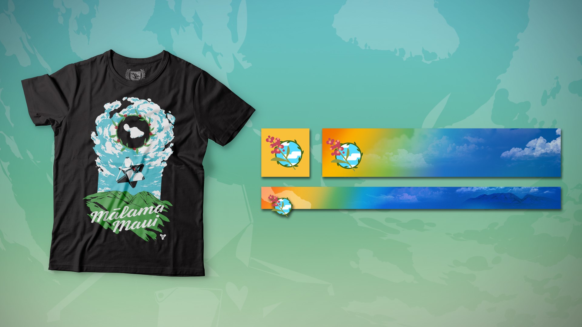 Guardians can support this mission by purchasing a specially designed T-shirt made in collaboration with Asians@Bungie (one of our employee-led Inclusion, Diversity, & Equity Associations) and a local artist from Oʻahu, Brady Evans. All profits will go to Direct Relief. This shirt features a Ghost set against the backdrop of Mauna Kahālāwai (West Maui Mountains) projecting a hologram of Maui. Surrounding the hologram is a Tti leaf (lāʻī) lei adorned with 'aʻaliʻi flowers. The lei is a common symbol of respect, love, and aloha with the lāʻī traditionally used to ward off bad spirits, cleanse, bless, and heal people. The ʻaʻaliʻi is an indigenous plant to Hawaii whose seeds can endure fire and are some of the first plants to grow back in burned areas. Below the design, the words "Mālama Maui" can be seen, meaning "Take Care, Maui" in Hawaiian.