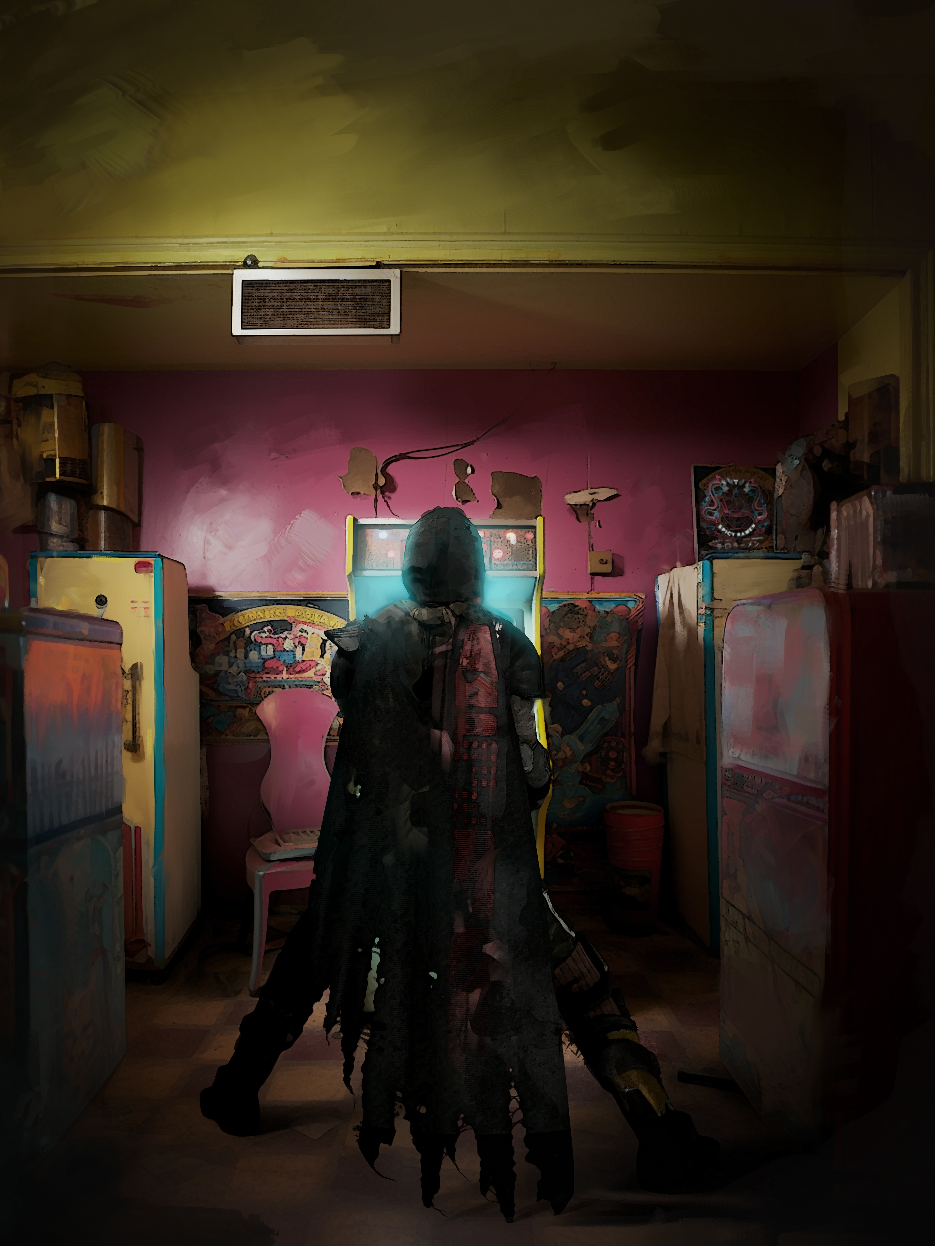 Ivan: What a great piece with an incredible atmosphere! I used to spend my school lunch money on R-Cayde machines in the past, so this #Destiny2AOTW rings a special bell for me. I wonder what game he's playing. Any thoughts?