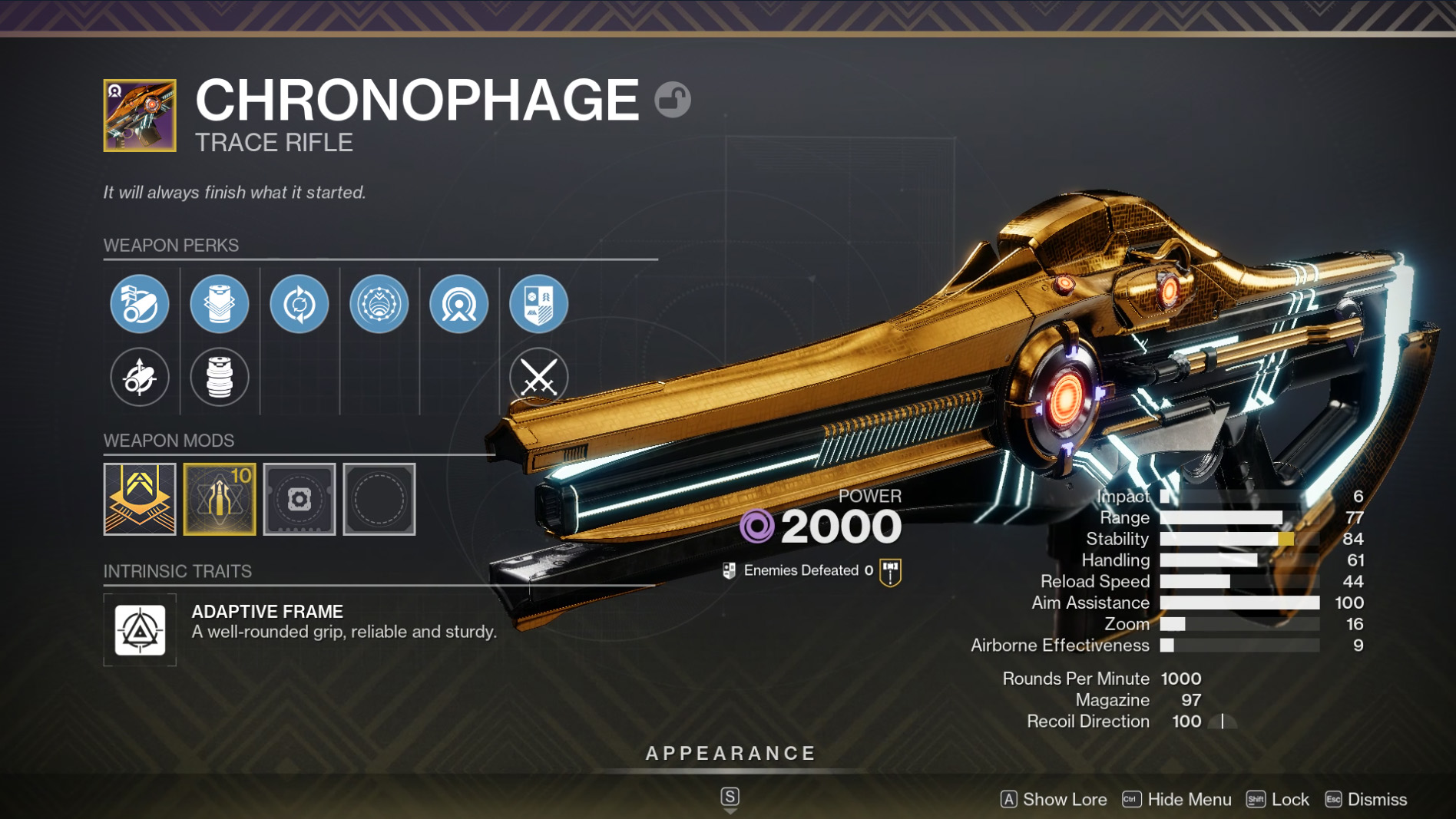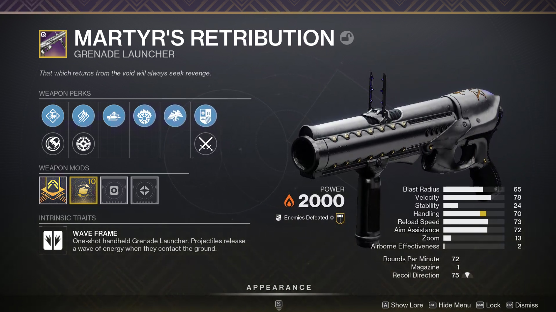 The first wave frame Grenade Launcher we shipped, back in Season of Dawn, this was a player favorite at the time and returns with a selection of its original perks alongside some newer buildcrafting options, with options for Solar subclass tie-ins and ability-focused builds.