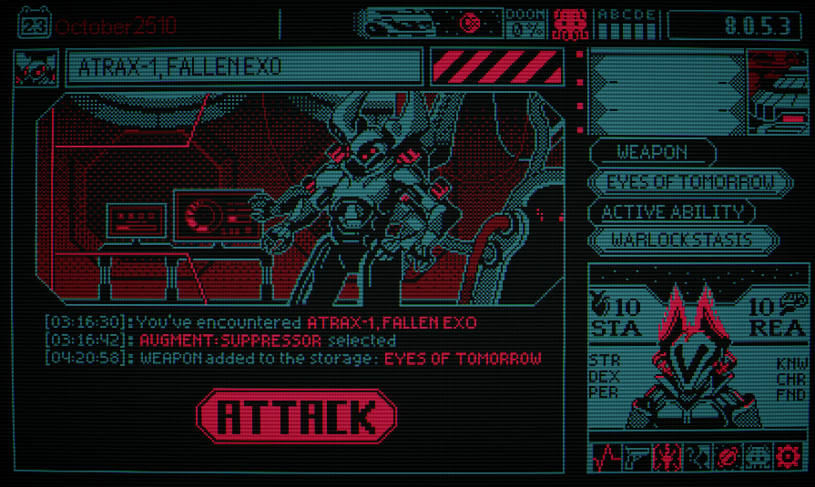 Br1 here, the CM that's not Cozmo or dmg_04. I'm a huge retro gaming nerd, to the point I own an old CRT monitor to hook my vintage consoles using the superior SCART RGB signal. This art of Atraks-1, or one of her replicas (who knows at this point), is inspired by how games looked on those old and glorious radiation-emitting screens and I just love it. Thank you for this!