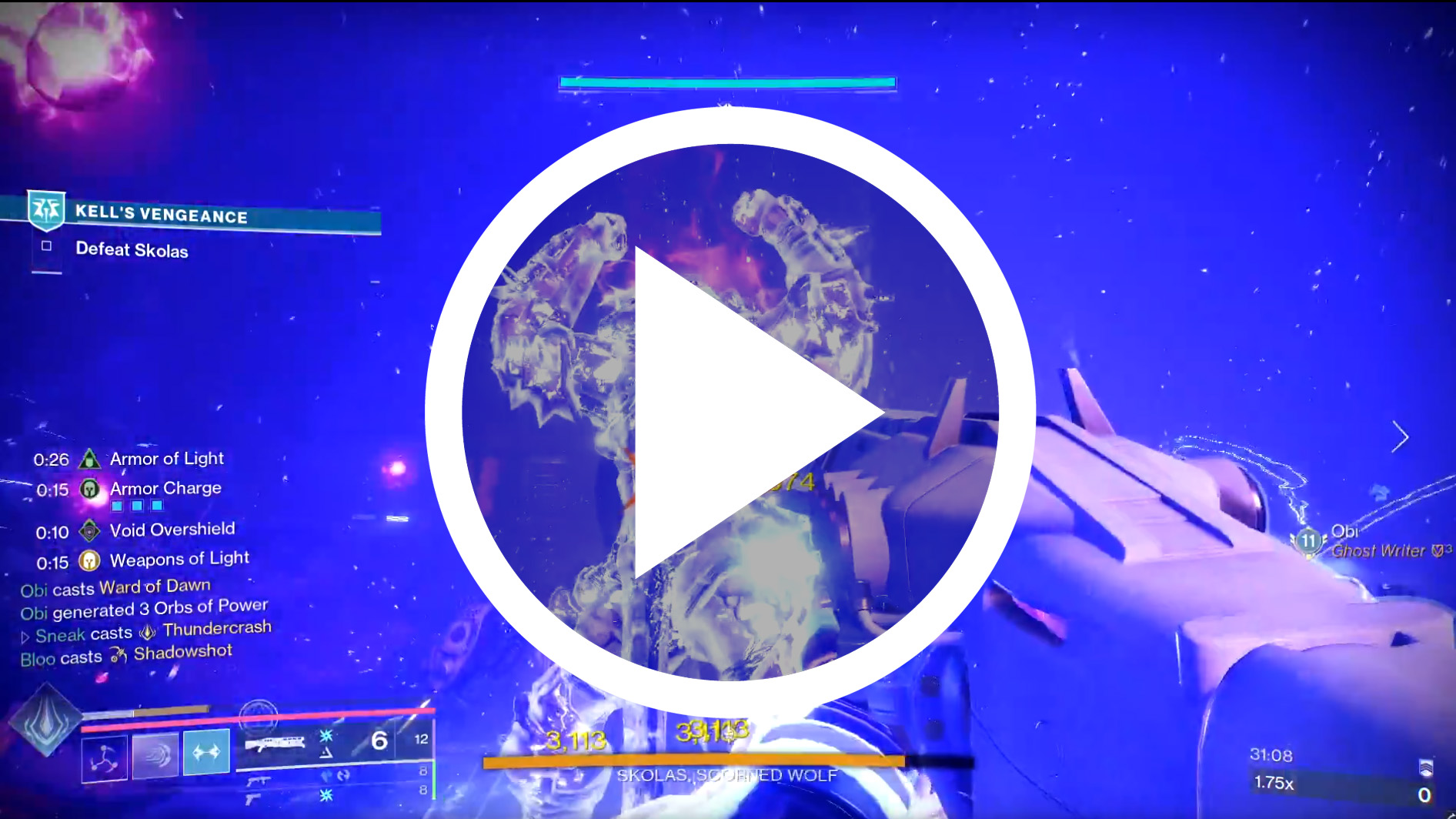 Yeah, taking down Skolas with three Gjallys is great, a fantastic homage to Destiny and proof you are a veteran. But how about putting a Ward of Dawn (a bubble, yes) around him and using three Legends of Acrius to one phase it in less than six shots, without caring about the orbs that restore his health? I wouldn't come back for more if I were him. Your ingenuity never ceases to amaze us, Guardians.