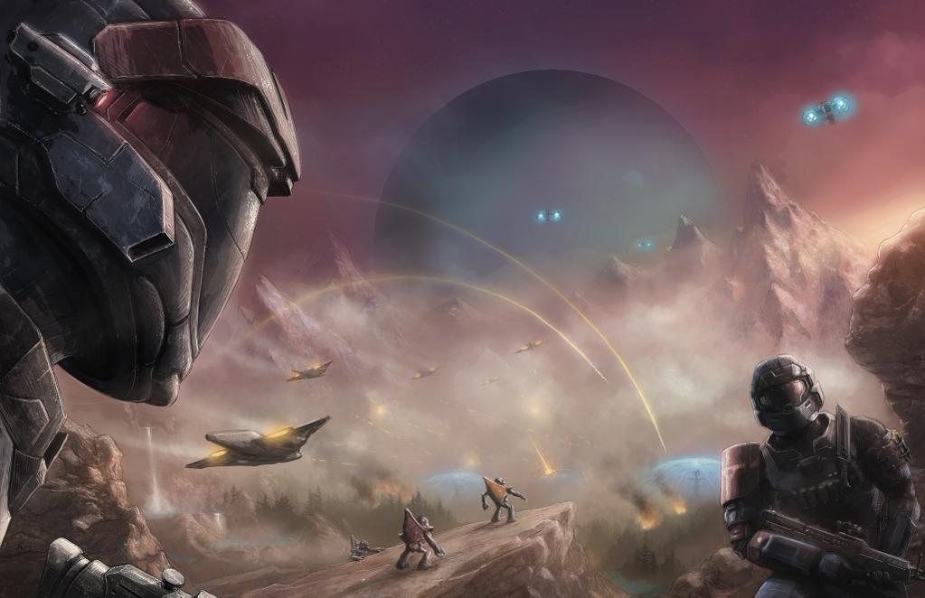 I was really having trouble with the composition of this one. Just kept feeling like there was something missing, something that might tie the whole piece together and up the epic feel. So for inspiration I picked up the Fall of Reach and inside was a Home Depot flyer advertising ceiling fans and BAM, I knew how to save this painting.